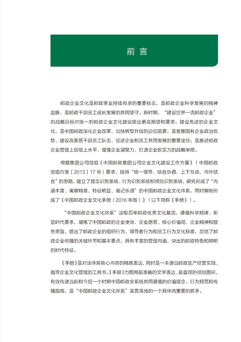 中国邮政企业文化 “一三五”企业文化体系概貌