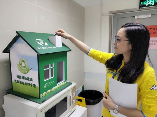 图为中邮保险湖北分公司开展的“废旧电池之家”活动。  □由保昌  摄影报道