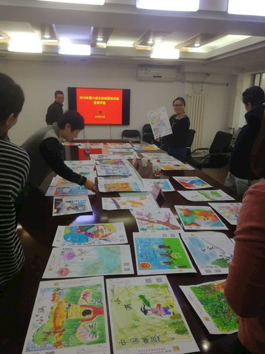 北京分公司少儿邮票设计大赛作品评审现场。