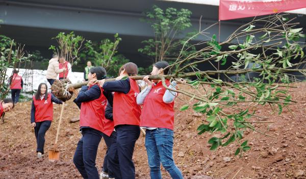为积极响应集团公司义务植树倡议,合川片区分公司近日组织28名党员干部,参与区委开展的“让绿化,改变生态”春季义务植树活动。活动中,大家在片区分公司党委书记的带领下,充分发扬不怕脏、不怕苦的团队精神,抬树苗、挥铁锹,挖坑、栽树、填土,干劲十足,将习近平新时代生态文明建设思想落实在具体行动上。