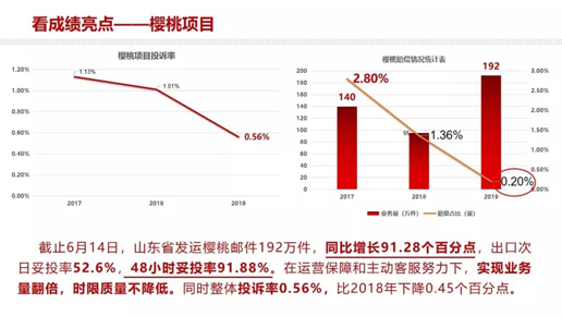 山东邮政在重汽物流市场、莘县香瓜市场、网点综合服务、跨境电商产业园融合发展、海尔物流源头获客、大樱桃项目运作等方面亮点突出,取得了不俗的成绩。