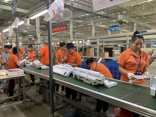 山东邮政为海尔企业提供综合型物流服务。图为胶州空调二期的工作人员正在组装空调产品内机送风模块。崔鹏森 摄