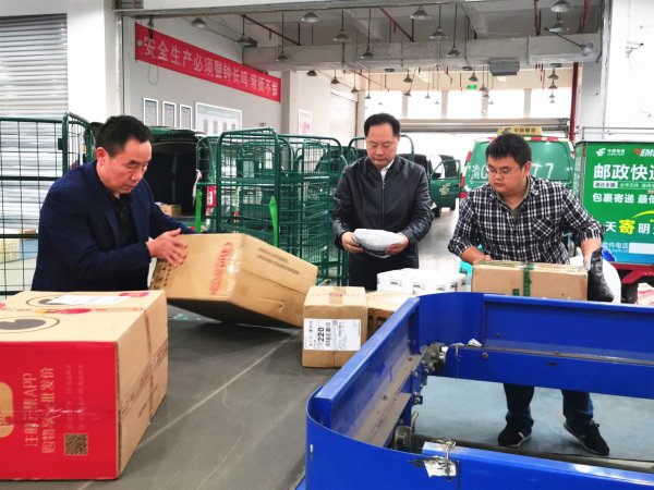 11月12日下午,合川片区分公司处理中心迎来邮件处理“小高峰”。总经理王绪华带队前往现场帮扶,参与分拣,为奋战在一线的投递员送去慰问。同时对“双11”旺季生产提出要求:一是全体员工要全力以赴,做到进出口邮件不积压;二是职能支撑部门要起好帮扶作用,合理安排人员到现场参与分拣、为一线投递员做好后勤保障工作;三是加强现场管控,对出现的问题及时解决,保障生产安全。