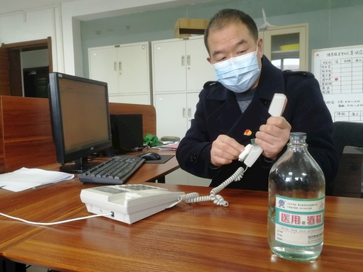 周中荣接班后的第一件事就是用酒精对办公物品进行消毒。
