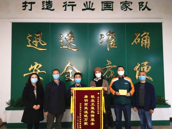 4月1日,客户汤女士将一面书有“敬业正直热情服务,廉明高效温暖万家”的锦旗,送到渝中区大坪营业部经理王维的手中,连声道谢。