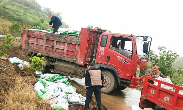 山路弯多坡陡,雨后更是湿滑。一路上,丁茂强和货车司机小心翼翼,却还是遇到了意外。在一急转弯陡坡处,货车右后轮打滑,不慎陷入泥地。因装载肥料达10吨,试了多种办法,车轮却越陷越深……