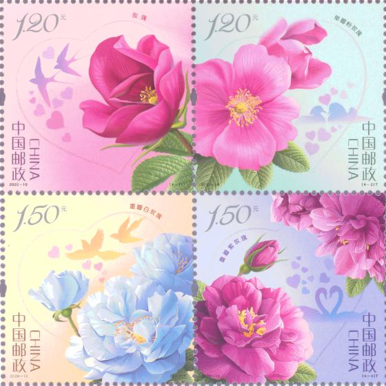 中国邮政定于2020年5月20日发行《玫瑰》特种邮票1套4枚。
