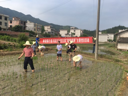 正是插秧时节,邮储银行江西省遂川县支行党支部驻村干部在走访过程中,得知新寨村68岁无儿无女的建档立卡贫困户谢昌校因身体不适无法及时插秧的情况后,立即向单位党支部书记进行了汇报。5月19日,遂川县支行党支部组织党员干部一行10余人来到谢昌校家的农田,开展“助贫插秧”主题党日活动,帮助贫困群众解决实际困难,让田间地头成为党员教育的生动课堂。 □焦溱溱  罗斌  龙星  摄影报道