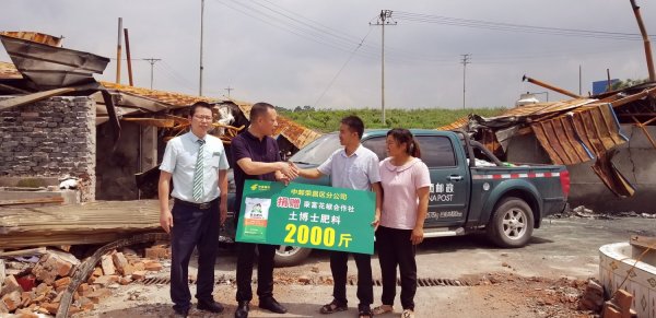 近日,长期与荣昌邮政有良好合作的一家花椒合作社的烘干处理场地不慎失火,导致大量花椒、设备损坏。了解这一情况后,荣昌区分公司副总经理(主持工作)朱军专程赶往事发场地,代表邮政企业向合作社捐赠土博士复合肥料2000斤。合作社负责人十分感动,称赞邮政“有国企担当”,并表示今后会进一步深化与邮政在金融、寄递、电商、分销、意外保险等各方面的合作。