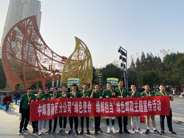 11月15日,潼南区分公司开展“绿色使命 绿邮担当”主题活动,通过组织员工参加2020年重庆潼南涪江半程马拉松赛(迷你赛段),宣传和践行绿色邮政发展理念,鼓励员工秉承马拉松精神,顽强拼搏、全力冲刺,完胜跨年战役目标。
