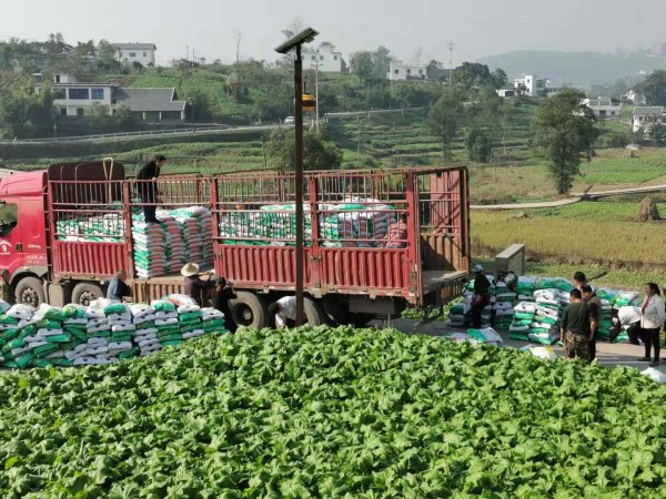 这可给谭洪和同事们带去不少幸福的“烦恼”,这段日子,他们不是在搬榨菜肥,就是在给村民送榨菜肥的路上。