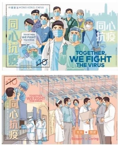 香港邮政15日公布,将于本月29日发行主题为“同心抗疫”的特别邮票及相关邮品,以表扬社会各界的抗疫英雄,并感谢中央政府对香港抗疫工作给予的全力支持。此次发行的邮票小型张共有2款,各嵌有一枚10港元的特别邮票。其中一款描绘一群与香港市民并肩作战、致力维持紧急服务的抗疫英雄,另一款邮票小型张则以不同场景呈现中央政府对香港的关爱和重视。