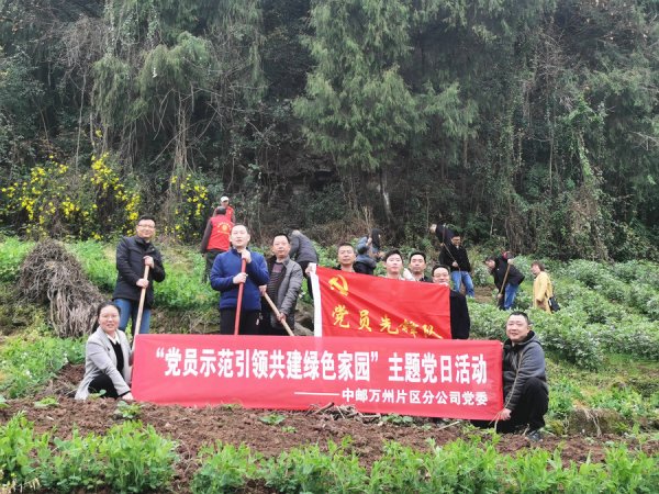 3月10日,万州片区分公司党委组织党员到区级义务植树基地,开展“党员示范引领,共建绿色家园”主题党日活动。活动现场,党员同志们挖坑栽苗、挥锹铲土、填土压实,齐心协力、分工协作,共计种植桃树100余株。大家表示,今天的活动非常有意义,不仅增强了自身的环保意识,更激发了大家进一步发挥党员先锋模范作用,为重庆“筑牢长江上游重要生态屏障、加快建设山清水秀美丽之地”贡献邮政力量。