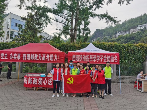 6月7日,酉阳县分公司组织开展“学党史 办实事 为高考助力”主题活动,在全县高考考点设置爱心服务站,提供饮用水及各类应急用品,以实际行动进一步推动党史学习教育走深走实,提升邮政品牌形象。在高考结束后,酉阳县分公司还将结合“渝考卡”产品为考生及家长提供咨询服务,进一步扩大影响范围。