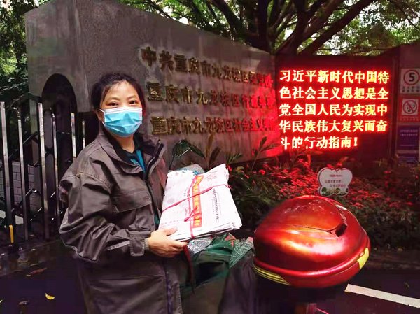 为切实做好邮政普遍服务,确保“七一”党报党刊当日见报,7月1日一早,重庆邮政各单位积极组织党报党刊投递督导小组分赴各营业部,现场督导党报党刊投递工作。图为党报党刊到达后,九龙坡区邮政分公司投递员第一时间落实投递工作,确保《人民日报》《重庆日报》等党报党刊当日投递到户。