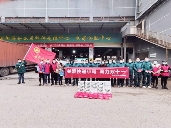 11月10日,云阳团县委书记杨盼带队前往云阳县分公司邮件处理中心,开展“关爱快递小哥、助力双十一”慰问活动,为80多位邮件分拣、投递人员一一送上“防疫爱心包”等慰问品,叮嘱大家在当前严峻的疫情防控形势下一定要做好自身防护。同时表示,“双11”期间邮件量剧增,团县委将组织志愿者助力邮政包裹分拣和投递,同时向全县广大市民发出倡议,对快递小哥多一点理解、说一声谢谢、给一句好评,激励他们更加热爱本职工作,更好地为人民服务。