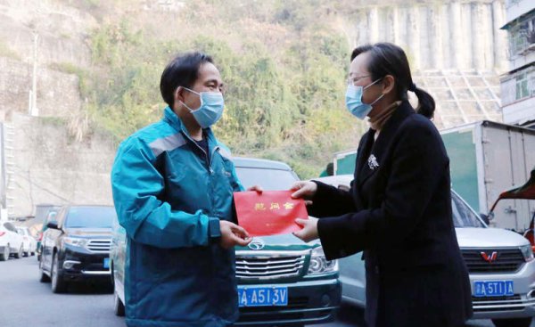 1月11日,市总工会副主席孙玉涛一行到奉节县分公司投递组看望慰问一线员工,为他们送去慰问金和防疫物品。在投递组,孙玉涛与投递员亲切交谈,了解他们的工作、生活情况,叮嘱他们要注意防寒保暖,严格落实常态化疫情防控各项措施,鼓励他们加强服务意识和水平,更好地服务人民群众。