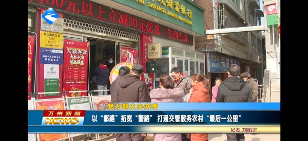 2月16日晚,万州电视台对万州邮政“警邮”业务进行题为“以邮路拓宽警路,打通交管服务农村最后一公里”的专题报道。报道中,市车管所四分所民警对邮政代办工作给予肯定,表示后续“警邮”双方将继续联动推进此项工作,着力构建“城乡一体、便民利民”的交管服务环境;已在邮政办理补办驾驶证业务的客户表示,在邮政网点办理交管业务方便实在。