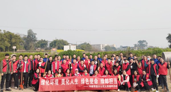 3月10日,荣昌区分公司党委协同地方团区委、区水利局等部门共同开展“绿化环境 美化人生 绿色使命 绿邮担当”主题党日活动。活动现场,党、团员们分工协作,挖土、扶苗、培土、浇水,为地方河道两岸分别种下100棵垂柳、100棵桂花树。党、团员同志们纷纷表示,此次活动不仅提高了大家保护生态平衡的责任感,还传播了邮政企业“绿色”新形象。