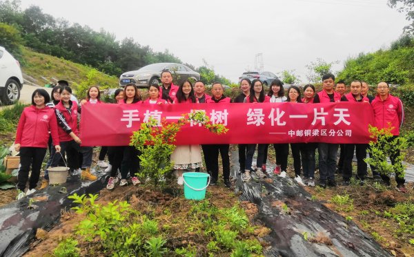 4月16日,铜梁区分公司组织机关部分员工及网点员工代表到安溪镇金滩村油茶基地开展“手植一棵树,绿化一片天”活动。活动现场,20余名青年员工热情高涨,有的挖坑、有的栽树、有的浇水、有的填土,齐心协力种下200余株油茶树,以实际行动助力乡村振兴,为打造大美铜梁贡献邮政力量。
