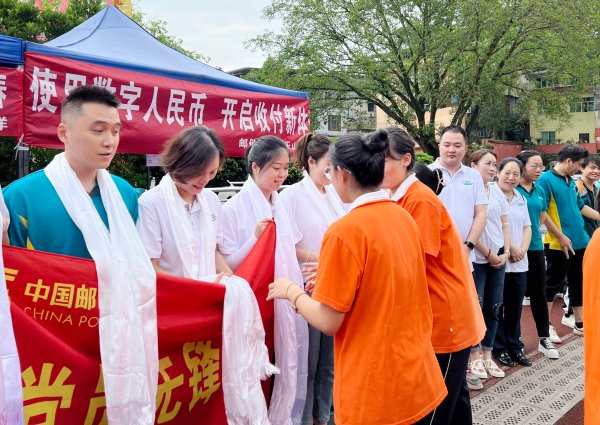 5月22日,沙坪坝区上新支局组织“党员先锋队”“青年突击队”到西藏中学收寄校园包裹。上新支局持续在毕业季为西藏中学提供上门收寄服务,得到师生高度认可。收寄现场,校方特意组织学生致以藏族最高礼仪,为所有邮政员工献上洁白的哈达表示感谢。
