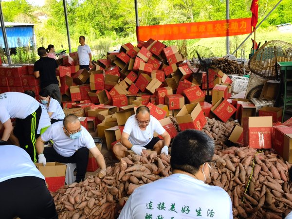 8月22日上午,开州区分公司党总支组织开展“津关蜜薯销售难,邮政惠农来助力”主题党日活动。领导班子带领党员先锋队、青年突击队来到津关团包村,帮助农户抢收、分拣、封装蜜薯1万斤,并安排专车前往运输,帮助农户缩短销售时间。