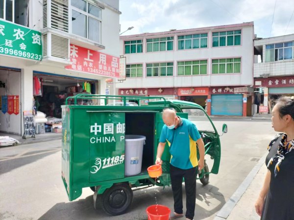 受持续高温天气影响,黔江区石家镇部分村社饮水源地已临近干枯。8月27日,区水利局利用洒水车送水救急,石家镇政府号召镇上群众协助将水送到各个村。得知消息后,石家支局积极响应,利用邮政投递三轮车为交通不便的30余户村民送去救急用水。