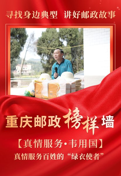 作为回龙邮政所投递员,57岁的韦用国已经在大足区回龙镇这片土地上服务了近20年,走街串巷,上山下坡,投递报刊信件、配送农资……骑着摩托丈量13万公里邮路,用邮包为万户千家捎去寄托及希望,他是老百姓眼中的“最信得过的人”,是“贴心的绿衣使者”。情系百姓、兢业奉献的他曾多次荣获永川片区分公司、大足区分公司“优秀投递员”称号。