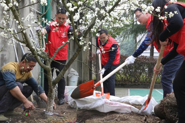 春回大地万物苏,正是一年添绿时。在第45个全民义务植树节即将到来之际,潼南区分公司组织20余名员工在办公楼场院内开展义务植树活动,用实际行动贯彻落实绿色发展理念,推动绿色邮政建设。现场,大家两至三人一组,分工合作,去除包裹树根的薄膜、扶树正苗、挥锹培土,一丝不苟的做好每个环节,合力将一棵棵树苗种下。当天,共种植桃李木12株、美人梅木6株以及月季、绣球、蔷薇等各类花苗,扮靓了潼南邮政形象。近年来,潼南邮政多措并举开展国土绿化工作,通过造林绿化、志愿服务、捐赠植树等方式组织全体员工履行义务植树义务,让全体员工自觉投入到绿色邮政建设、行业生态保护和国土绿化中来。