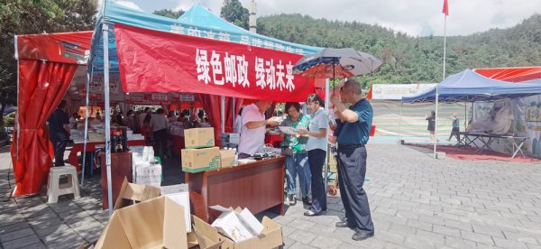 6月20日,酉阳县分公司以“护苗2023·绿书签”进社区惠民书展活动为契机,在桃花源广场开展“绿色邮政·绿动未来”主题宣传,积极向过往市民、逛书展的客户讲解绿色包装治理、绿色发展理念、环保小知识并现场回收复用瓦楞纸箱,展示绿色邮政的良好形象。截至发稿时,已回收瓦楞纸箱100余个。