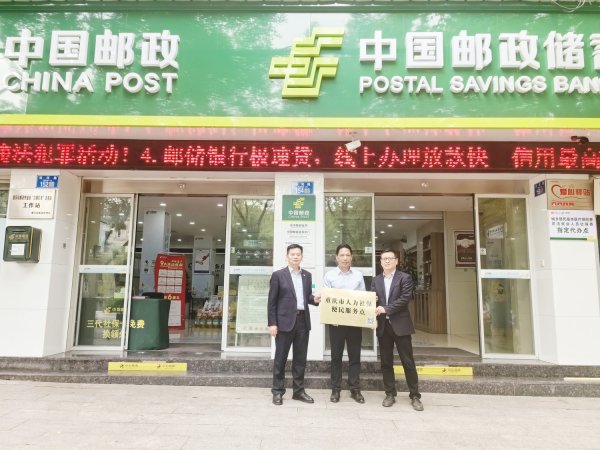 11月9日,大足区人社局副局长蒋昌杰来到大足区滨河路邮政所,授予“重庆市人力社保便民点”铭牌。自联合邮储银行大足支行与区人社局签订战略合作协议起,大足区分公司积极推动协议事项落地,已实现全区34个网点均可办理社保20项帮办代办业务和20项现场办理业务。蒋昌杰表示,要共同推进“互联网+人社”服务,打造“15+5”人社便民服务圈。现场,双方就将滨河路邮政所打造为24小时社保服务站达成合作意向。