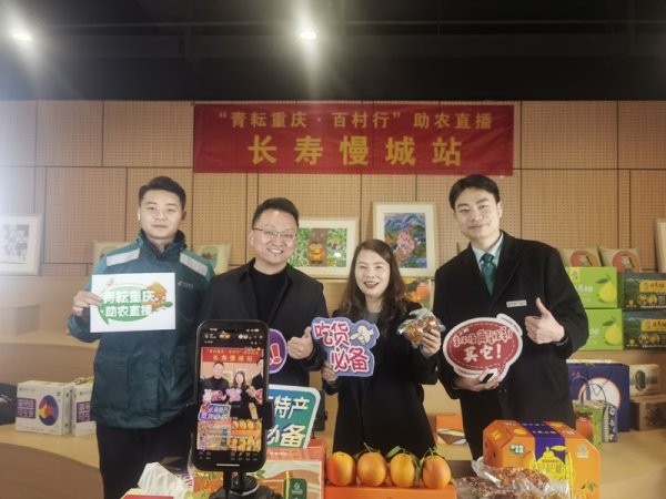 1月16日,长寿区分公司受慢城文化旅游股份有限公司邀请,联合开展“青耘重庆.百村行”助农直播活动,为慢城血橙、黑猪腊制品等带货。经前期的广泛宣传和主播们的现场互动,直播间热闹不已,吸引3500余人次观看,获得点赞10万次,助销血脐108单、农家腊制品80单,实现销售额2万元。
