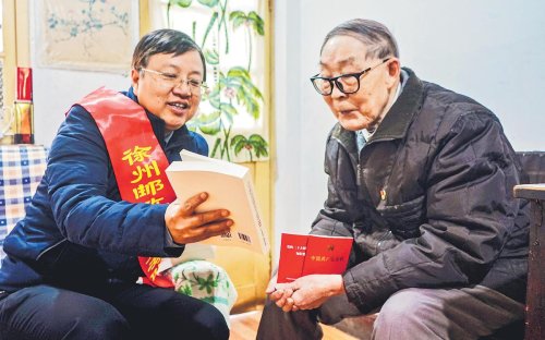 近日,江苏省徐州市邮政分公司党委推出“送学上门”服务,通过送学入户、讲解到人、现场微党课等方式,为老党员送去学习资料包,让他们第一时间了解到党和国家的方针政策,进一步丰富老党员精神文化生活。