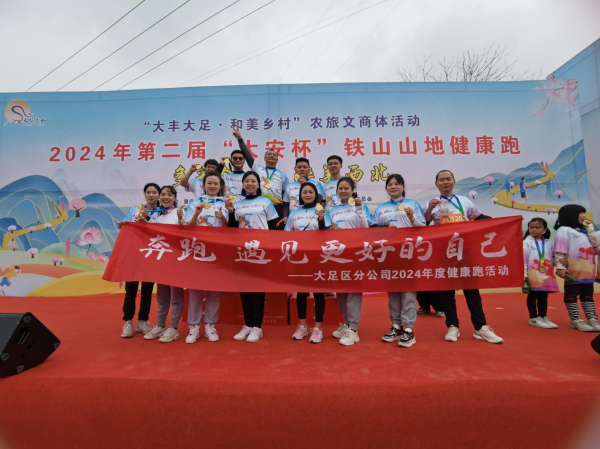 3月9日上午,“大丰大足·和美乡村”2024年农旅文商体活动第二届“大安杯·铁山山地健康跑”在铁山镇乡村开跑。大足区分公司组织21名运动员参加本届健康跑,其中,3名队员参加了20公里山地赛,16名队员参加了5公里环湖赛,2组家庭参加了亲子赛。伴随着阵阵油菜花的清香、温暖的春日阳光与和煦的春风,运动员们用激情与汗水在健康跑的各条赛道上践行着“快乐工作 幸福生活”的新时代重邮倡导,全体胜利完赛,其中,何映墨家庭在100余组组家庭中赢得亲子组第4名的好成绩。下午,运动们还参加了套圈、浑水摸鱼等趣味活动。