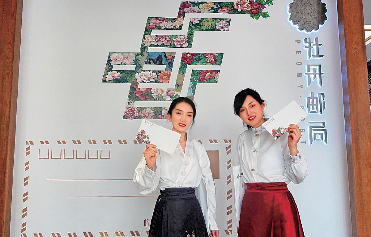 穿汉服、赏牡丹成为牡丹邮局打卡潮流。