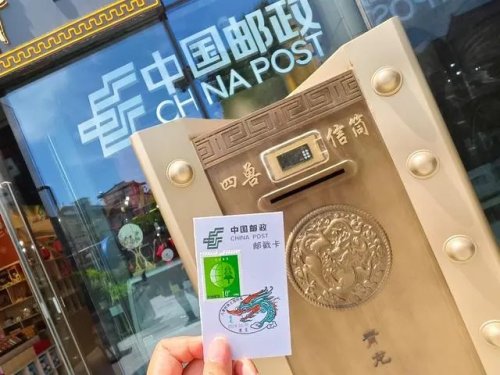 夜色里的大唐不夜城街区,2021年建在这里的大唐邮驿主题邮局,因为铜质打造四面投信的“铜匦·四兽”邮筒,显得格外扎眼。这里作为全国首家以唐文化为主题的邮局,一款款独具巧思的邮政产品——大唐特色明信片、手办、各式章戳,2024年全国首枚生肖龙套色文化日戳等,帮市民游客直观了解邮驿文化,吸引大量游客前来打卡,是目前西安日接待游客量最大的主题邮局。