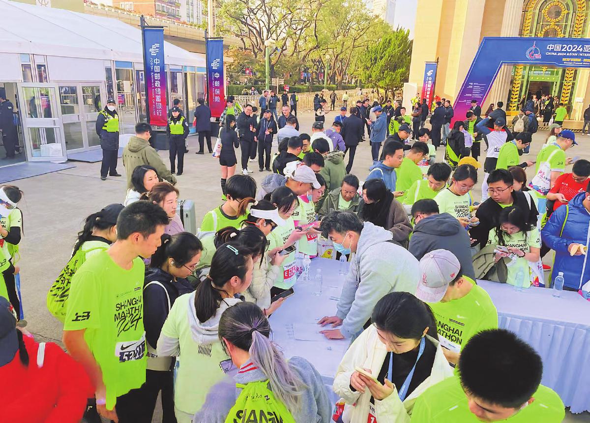 12月1日,亚邮展为参加当天上海马拉松健康跑的选手开设专场,提供打卡、盖戳、二维码定制个性化邮票等服务。