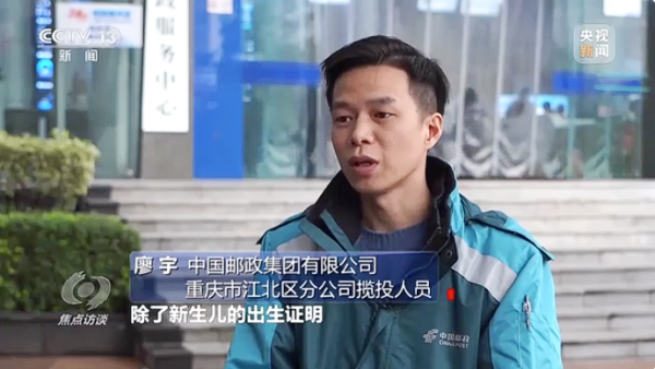 1月21日,央视《焦点访谈》栏目聚焦“高效办成一件事”主题,报道重庆邮政以特快专递为桥梁,高效衔接医院和政府部门,为市民提供便捷的证件寄递体验。