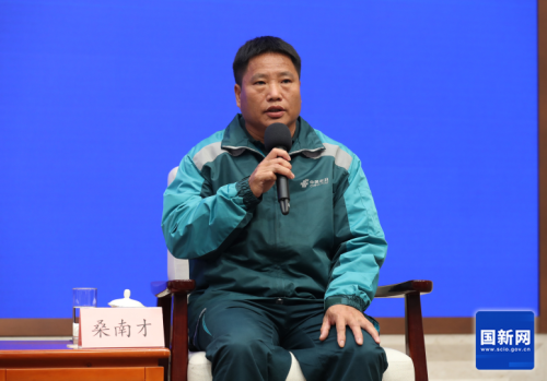 5月29日,全国民族团结进步模范个人、全国劳动模范、云南省怒江州邮政分公司泸水市称杆乡邮政所所长桑南才作为邮政行业唯一代表,和其他4名来自交通运输领域的杰出奋斗者共同参加由国务院新闻办公室举办的“新征程上的奋斗者”中外记者见面会,围绕“加快建设交通强国 勇当开路先锋”与中外记者见面交流。