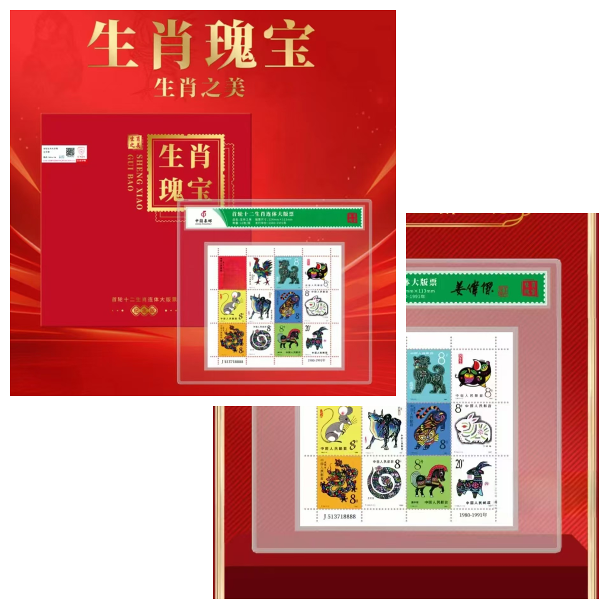 《生肖瑰宝·生肖之美首轮十二生肖连体大版票纪念版》仿印邮票产品: