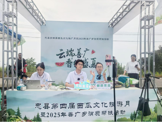 7月10日,忠县分公司组织青年员工参加忠县第四届西瓜文化推广月暨2025年善广乡消费帮扶活动。活动现场青年员工通过直播,向广大网友生动展示各类农特产品,详细介绍产品特点及背后故事,吸引众多网友关注与购买。活动期间累计销售农产品633单,此次活动不仅有效拓宽了农产品销路,为农户带来实在收益,更充分彰显了邮政企业服务“三农”、心系百姓的责任担当。